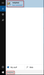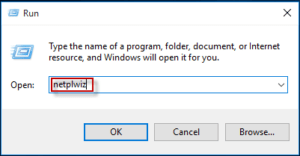 - Press Win+R -> Run dialog box, type netplwiz and press Enter