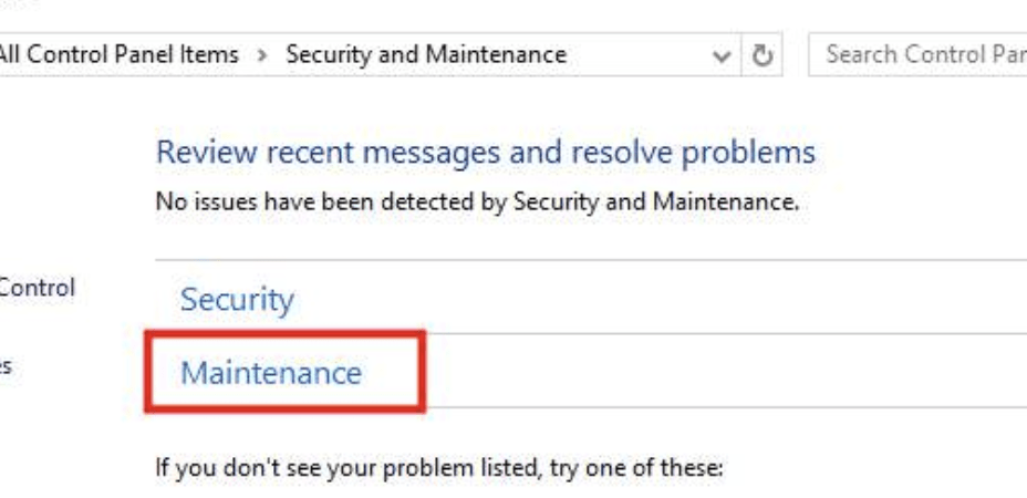 2) Click Maintenance. Now You will see that drive status. If there is an issue, you will see it under drive status. Click that link.