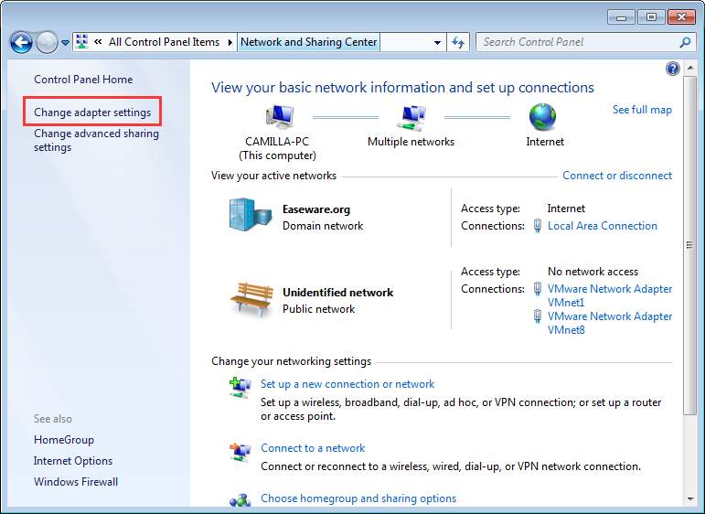 Step 3: Change adapter settings > Right-click on the connection > Properties.