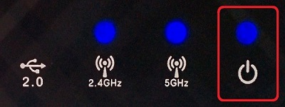 Step 7: Hold the reset button present on the back side of the router until the power light begins to flash. Then release the reset button.
