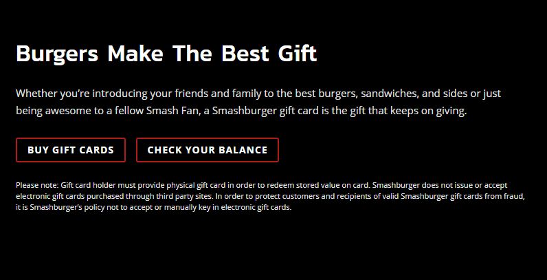 Smashburger gives you an opportunity to buy gift cards by introducing the best burger of Smashburger. You can also check the balance of the gift card.