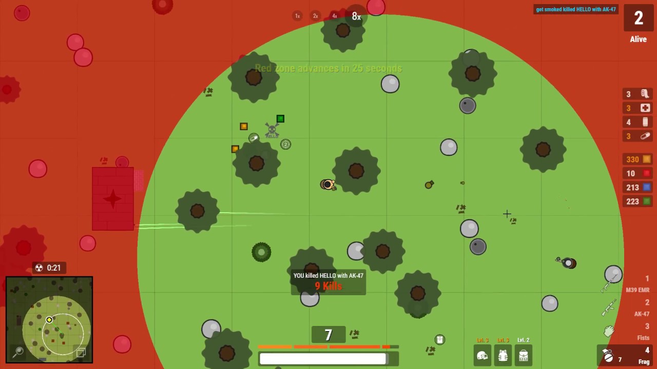 A typical Surviv.io match can last anywhere between 3-5 minutes. This quick-paced, intense gameplay is what makes the game extremely fun to play.