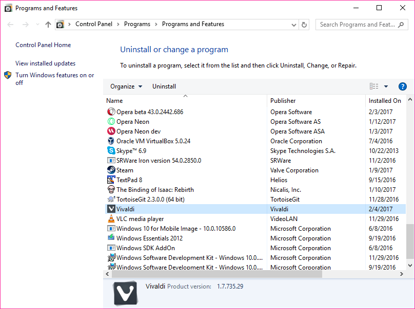 - Go to Programs and Features, select the above applications, and click Uninstall.