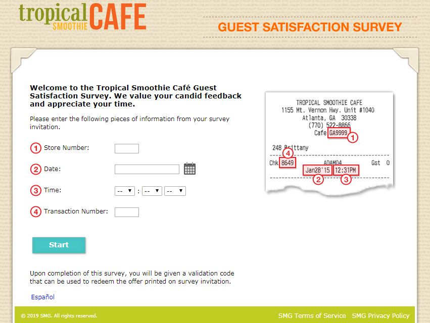 Check out the below mention procedure and follow them as mentioned to complete the Tropical Smoothie Survey and get your Free Validation Code.