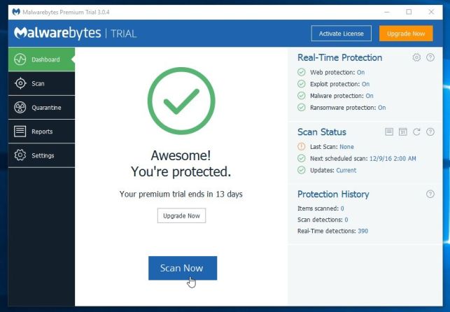 Step 4: As soon as Malwarebytes get installed on your device it will automatically start and update the antivirus database. You have to click on the ” Scan Now” option to start the scanning process.