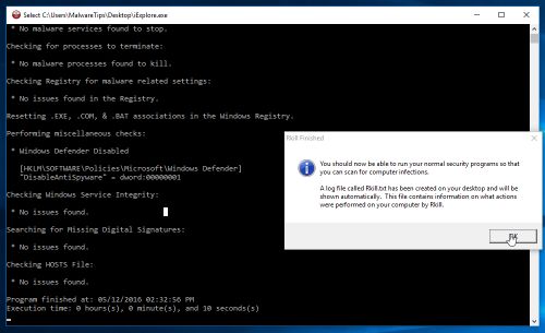 Step 4: After the work is done Rkill will generate a log. Remember that don’t reboot your computer immediately as this may lead to restarting of malicious programs.