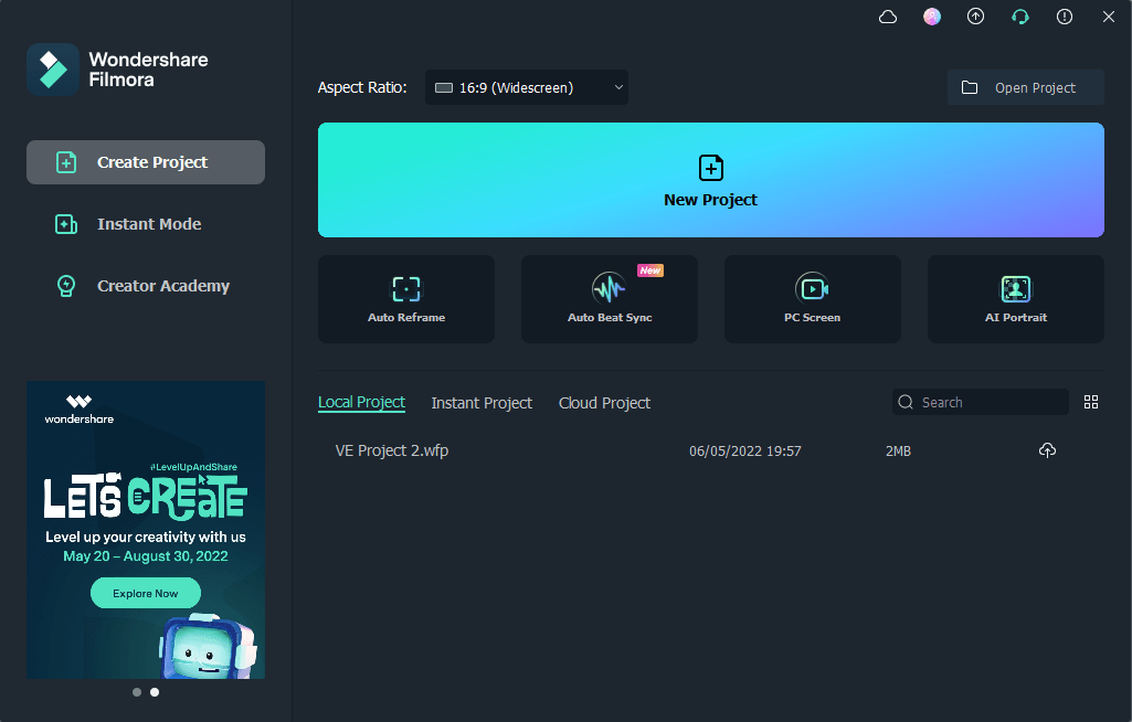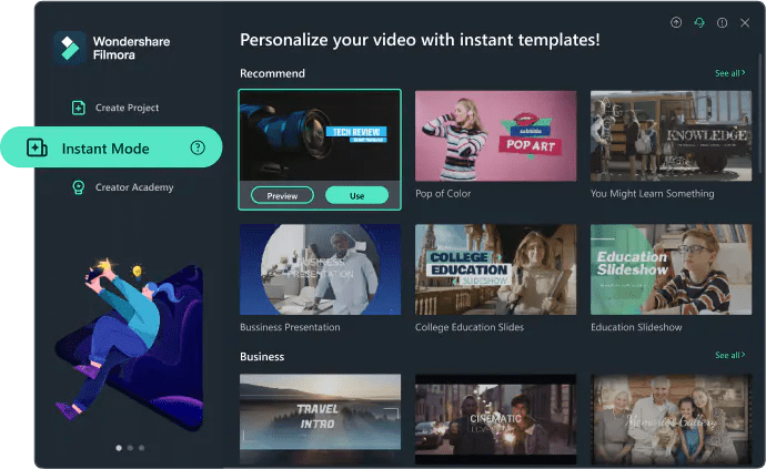 Video editing expertise is not required when creating a video with Instant Mode. Instead, upload the media files you want to display, and Filmora will immediately make a video.