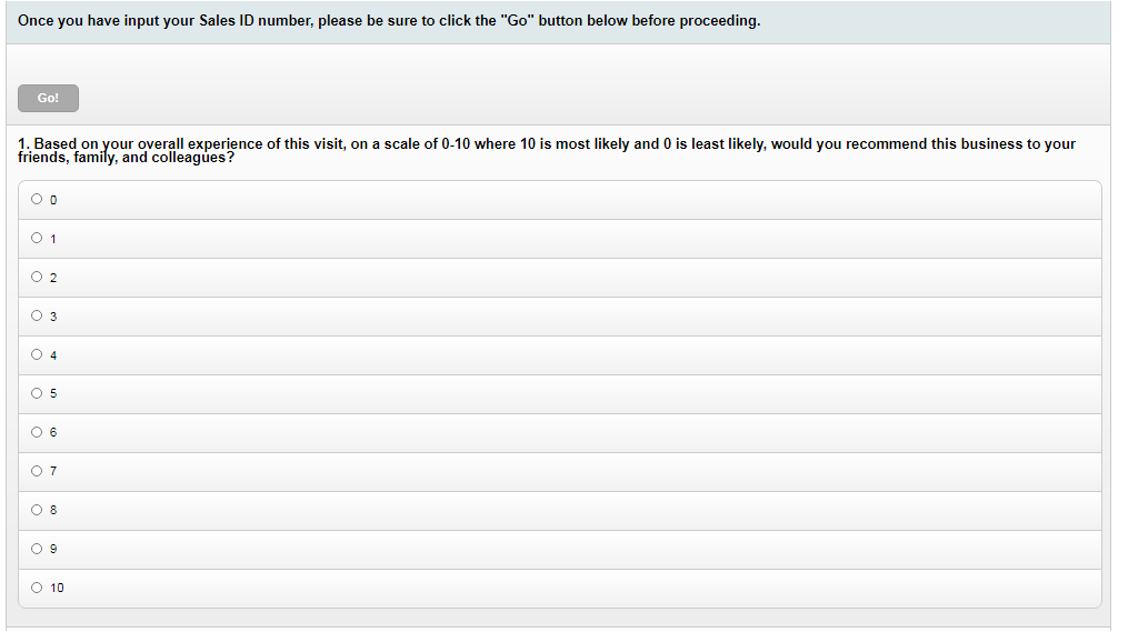 - Once you have input your Sales ID number, please be sure to click the “Go” button below before proceeding.